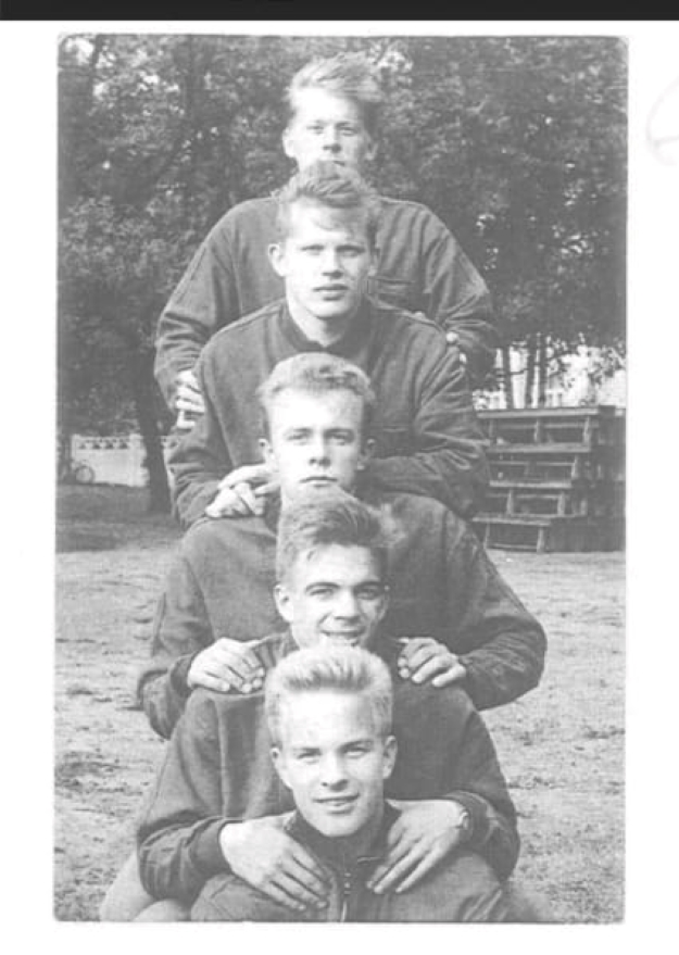 Tässä on Mikkelin Pallo-Kissojen pelaajia. Vasemmalta alkaen he ovat Pertti Silvonen, Keijo Tamminen, Pentti Kekkonen, Matti Laamanen ja Kauko Hälvä.
