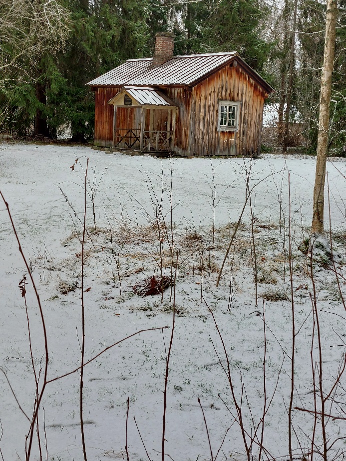 Tämän kuvan olen ottanut ohi kulkiessani. Aivan tässä lähellä on Erkkolan museon parkkipaikka. Talvella tämä Aleksis Kiven kuolinmökki ei taida olla kuin sopimuksen mukaan joskus auki.