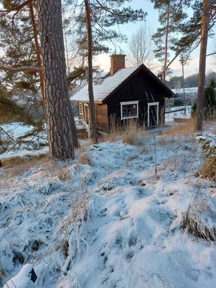 Tässä on Jannen ja Ainon sauna kuvattuna 8.12.2021. Olen käynyt sisälläkin ihailemassa Ainon suunnittelemaa vedenjohdatusjärjestelmää. Voin siitä kuvankin näyttää myöhäisemmässä vaiheessa. Aino oli itseasiassa koko saunan suunnittelija.