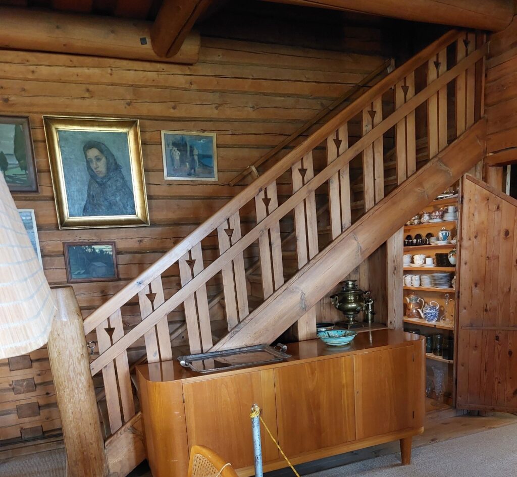 Arkkitehti Lars Sonck sijoitti avoportaat yläkertaan huoneen ikkunan vastaiselle seinustalle. Näin ei tilaan syntynyt turhaa läpikulkua. Kuvan otin itse 20.5.2021.