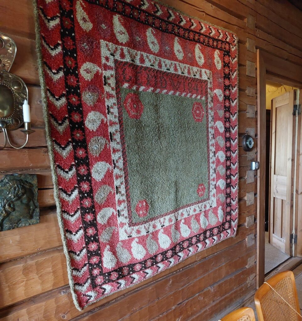 Oven vasemmalla puolella on suurin osa seinää rekiryijyn peittämää. Siihen on kudottu luku 1841, joka viittaisi Sibeliuksen äidin syntymävuoteen. Säveltäjämestarin lapsuudenystävän Walter von Konowin kirjeen perusteella ryijy olisi valmistunut vuonna 1904. Se voisi silloin olla vaikkapa tupaantuliaislahja.
