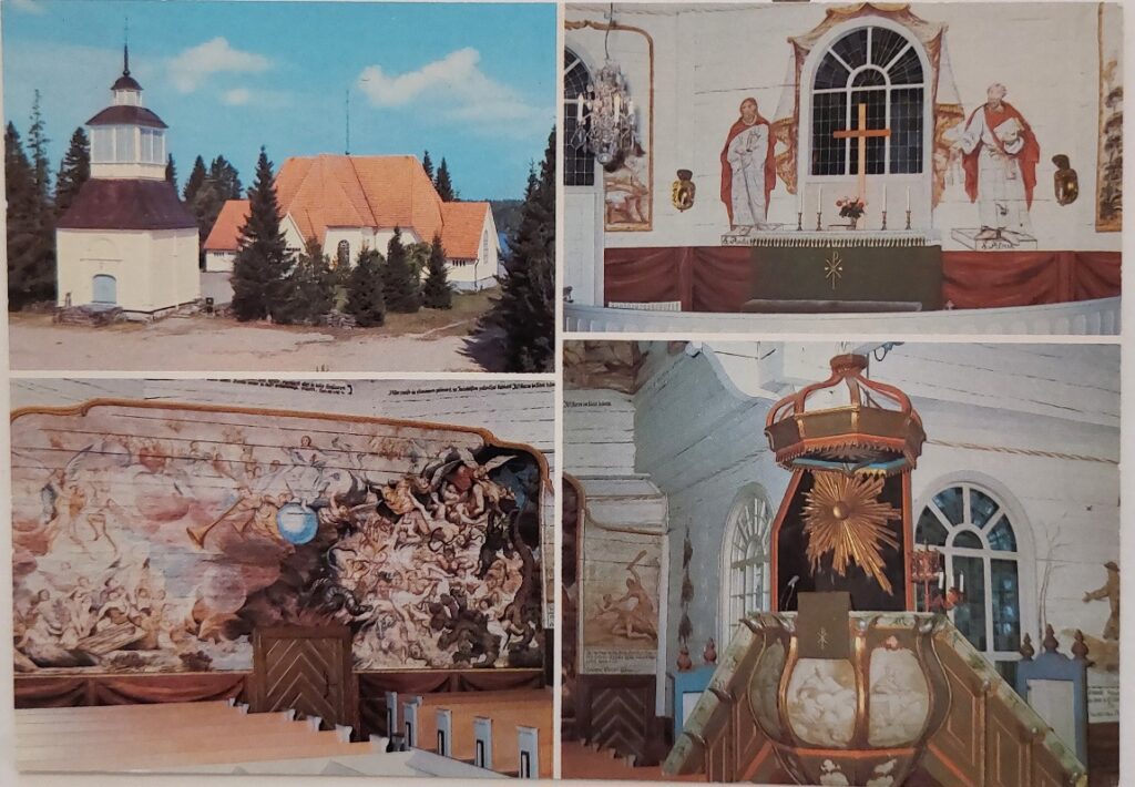 Käyn hiippakuntia läpi aloittaen pohjoisesta. Oulun hiippakunta käsittää myös Lapin. Siellä saksalaiset ehtivät Lapin sodassa tuhota useita kirkkoja. Onneksi joitakin on myös säilynyt. Tällä kertaa tuon esille maalauksia 12 eri kirkosta. Ne ovat Alatornio, Alavieska, Enontekiö, Haapajärvi, Halsua, Haukipudas, Himanka, Inari ja sieltä myös Ivalo, Kalajoki, Kannus ja Karunki. Näitä tulee piisaamaan, sillä minulla on yli 2000 postikorttia kirkoista.