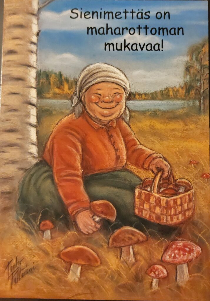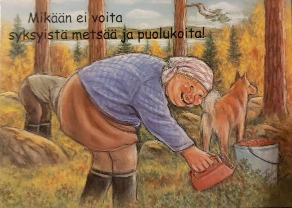 Olen itse tykännyt sienestää ja marjastaa. Appiukon kanssa keräilimme muutaman vuosikymmenen aikana mustikoita ja puolukoita Sonkajärven metsistä. Se oli ulkoilua ja samoilua parhaimmillaan. Ylä-Savossa ei minulla tuohon aikaan ollut kokemusta sienestämisestä. Sitä tuli enemmän tehdyksi Mikkelin seudulla ja Järvenpäässä. Meillä oli tapana vuokrata kesämökki viikoksi joka vuosi eri puolilta Suomea. Siinä yhteydessä kiersin lähimetsät sieniä ja marjoja keräten.